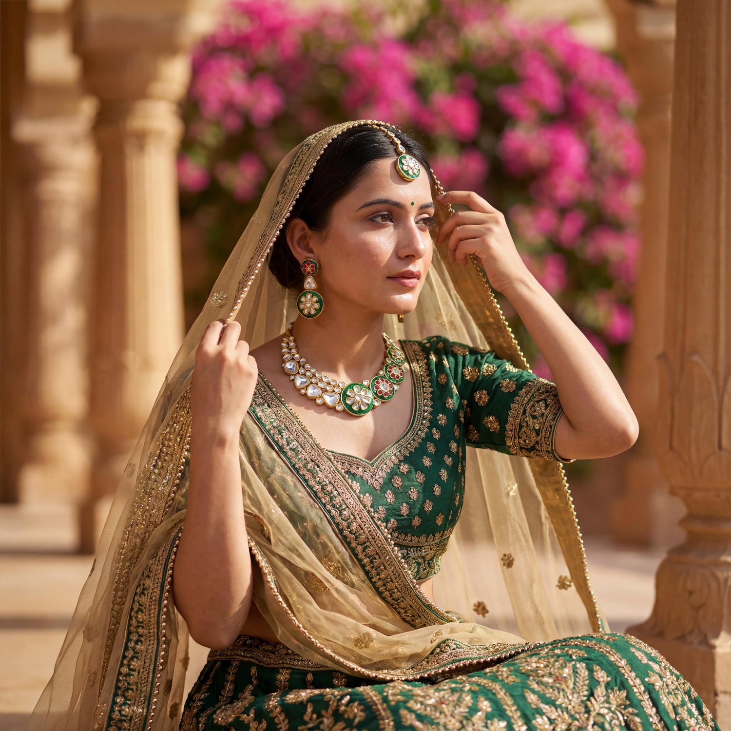 The Epitome of Elegance: Hasadi Necklace | Rajwadi Rose Design with Green Stones Bridal Set...