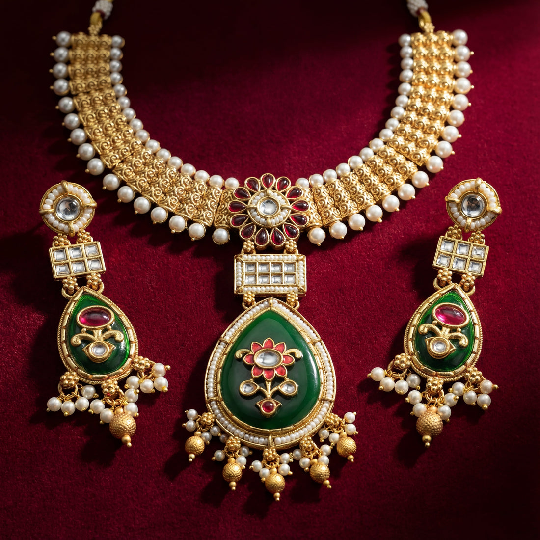 Kundan Necklace Set | Rajwadi Pearl Rajputi Jewelry for Brides