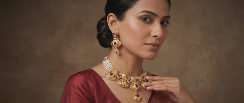 Temple Choker Necklace | Pallavi Gold-Plated South Indian Jewellery Set