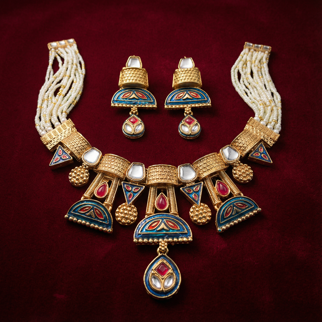 Meena Jewelry Set | Rajputi Luxury Indian Necklace & Earrings