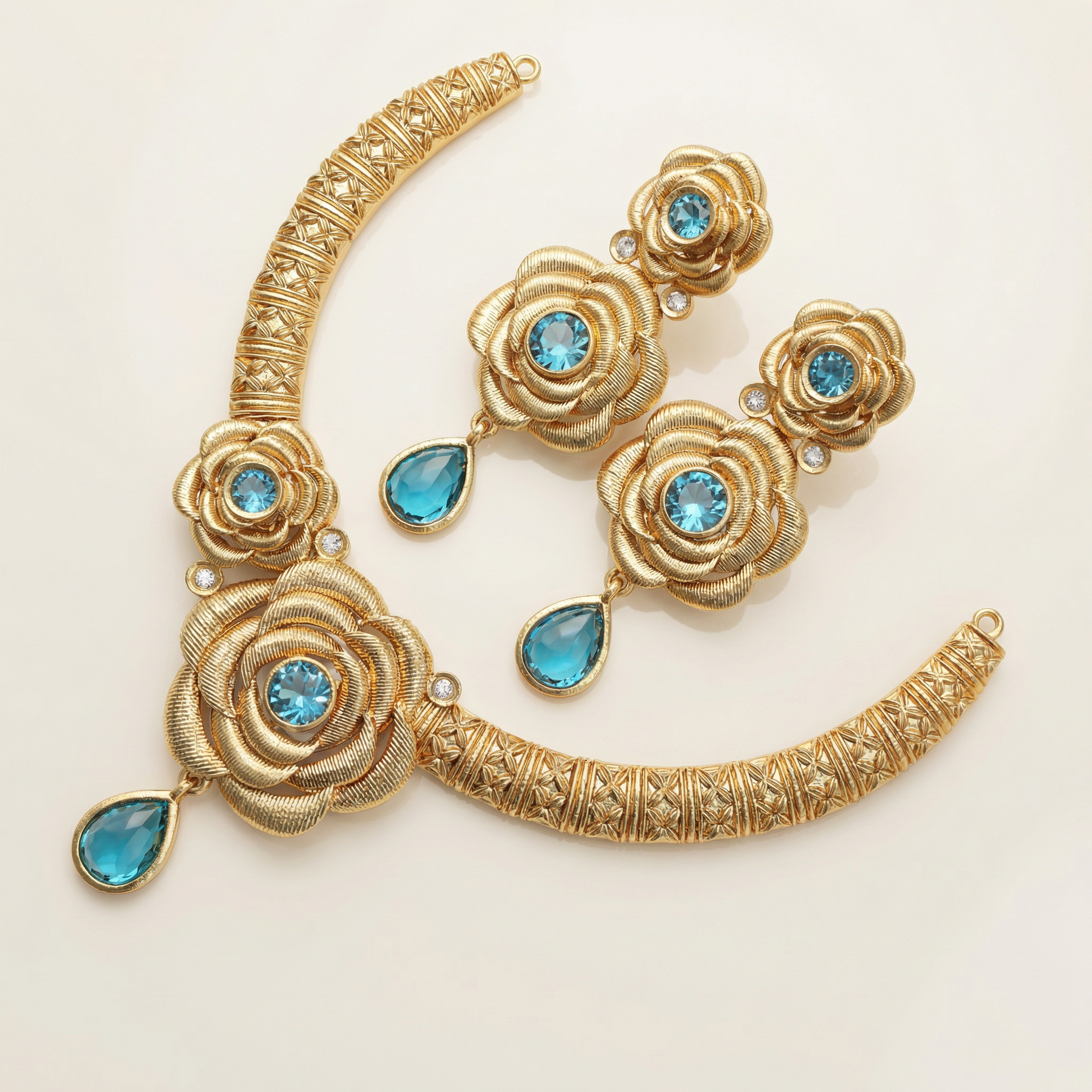 - Exquisite Rajwadi Rose designs intertwined with majestic green stones, creating an aura of luxury and sophistication.