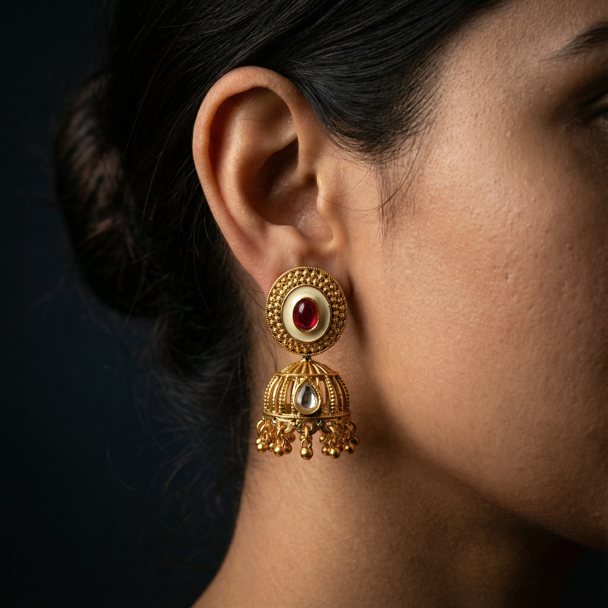 - Rajputi Architecture Inspired Design: Intricately crafted Kundan work on the choker and earrings, mirroring the intricate details of Rajputi architecture.