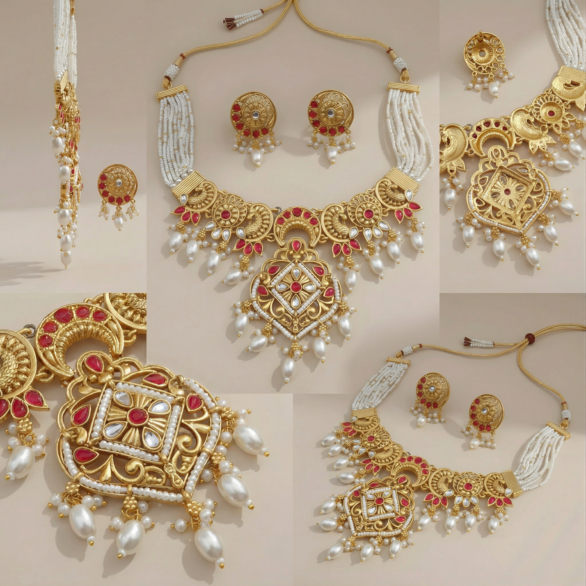 Pearl Choker Set | Embellish Your Elegance with the Rajputi Luxury Indian Bridal Jewelry