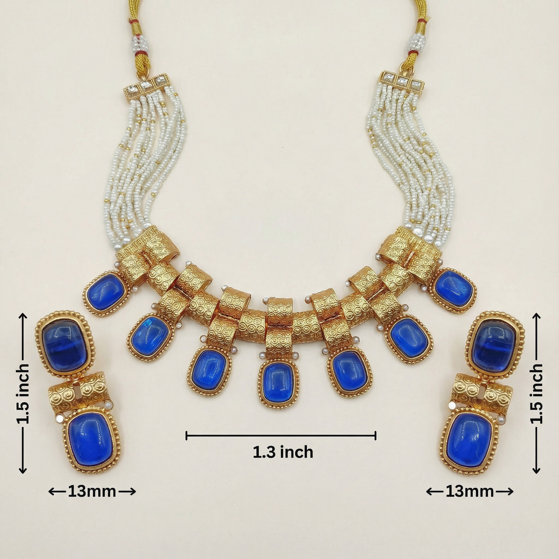 - Features a majestic choker design adorned with precious stones and motifs inspired by the rich heritage of India