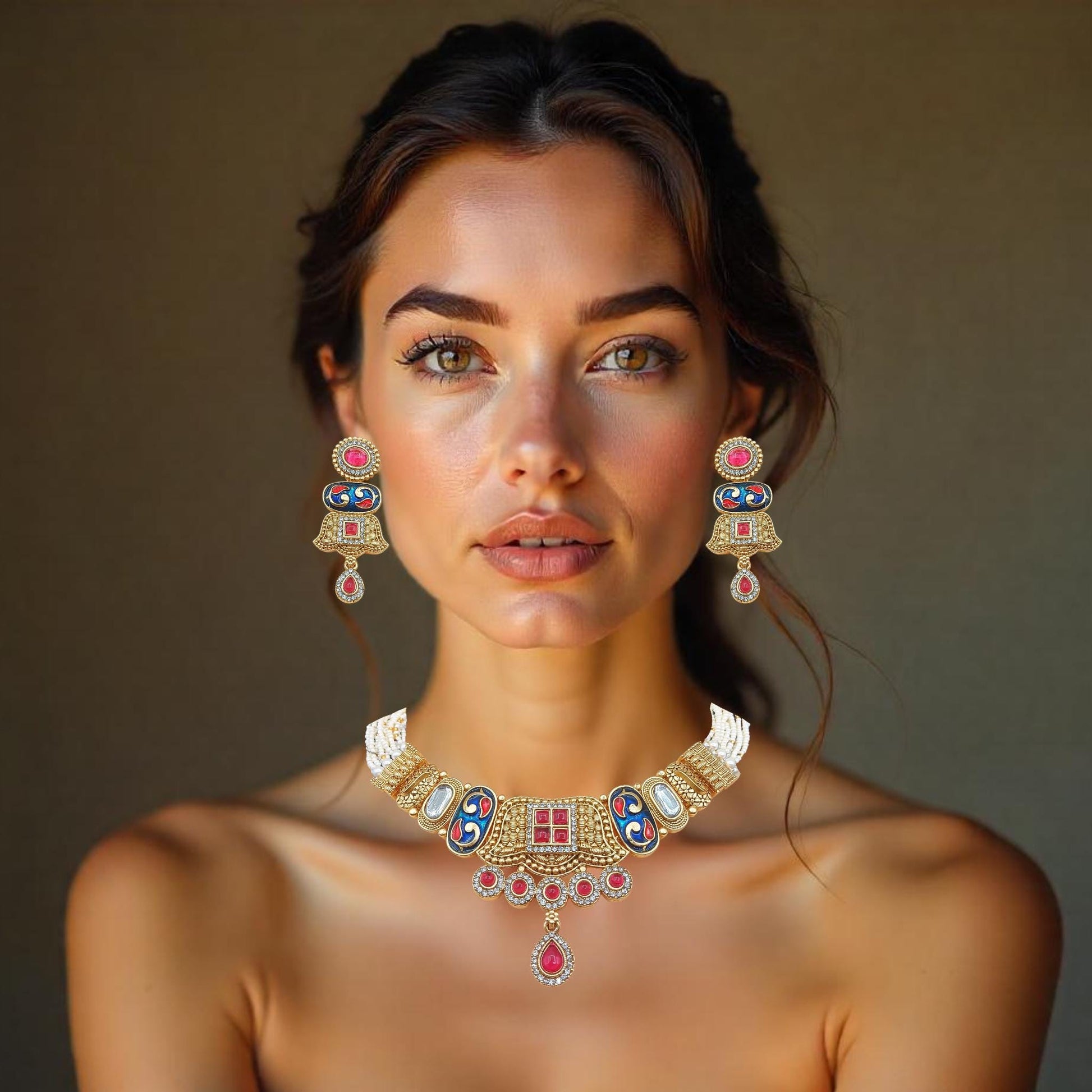 Meenakari Kundan Bridal Choker | Shahi Blue Rajwadi Jewelry
