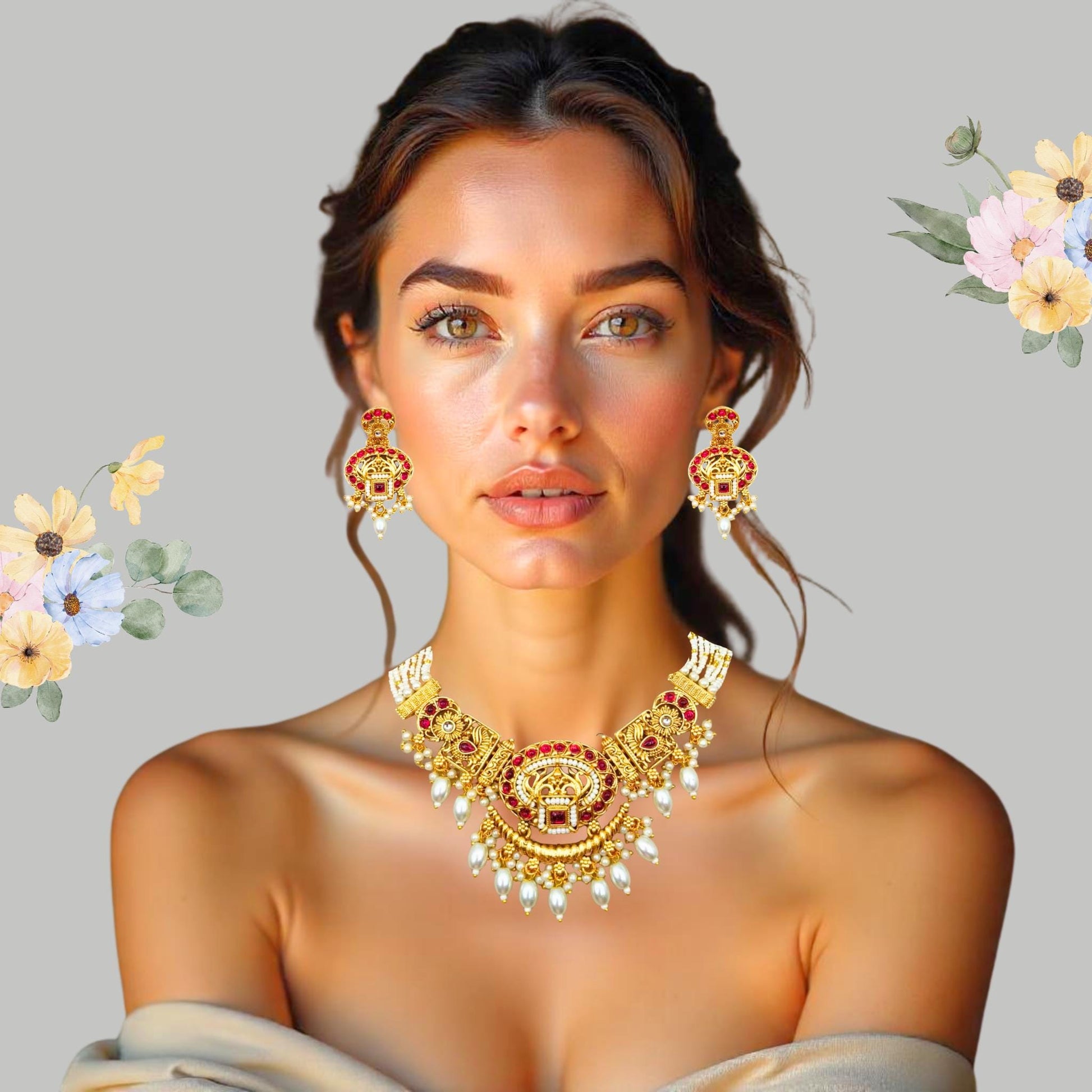 Meenakari Rajwadi Necklace Set: Agni Red Bridal Jewelry