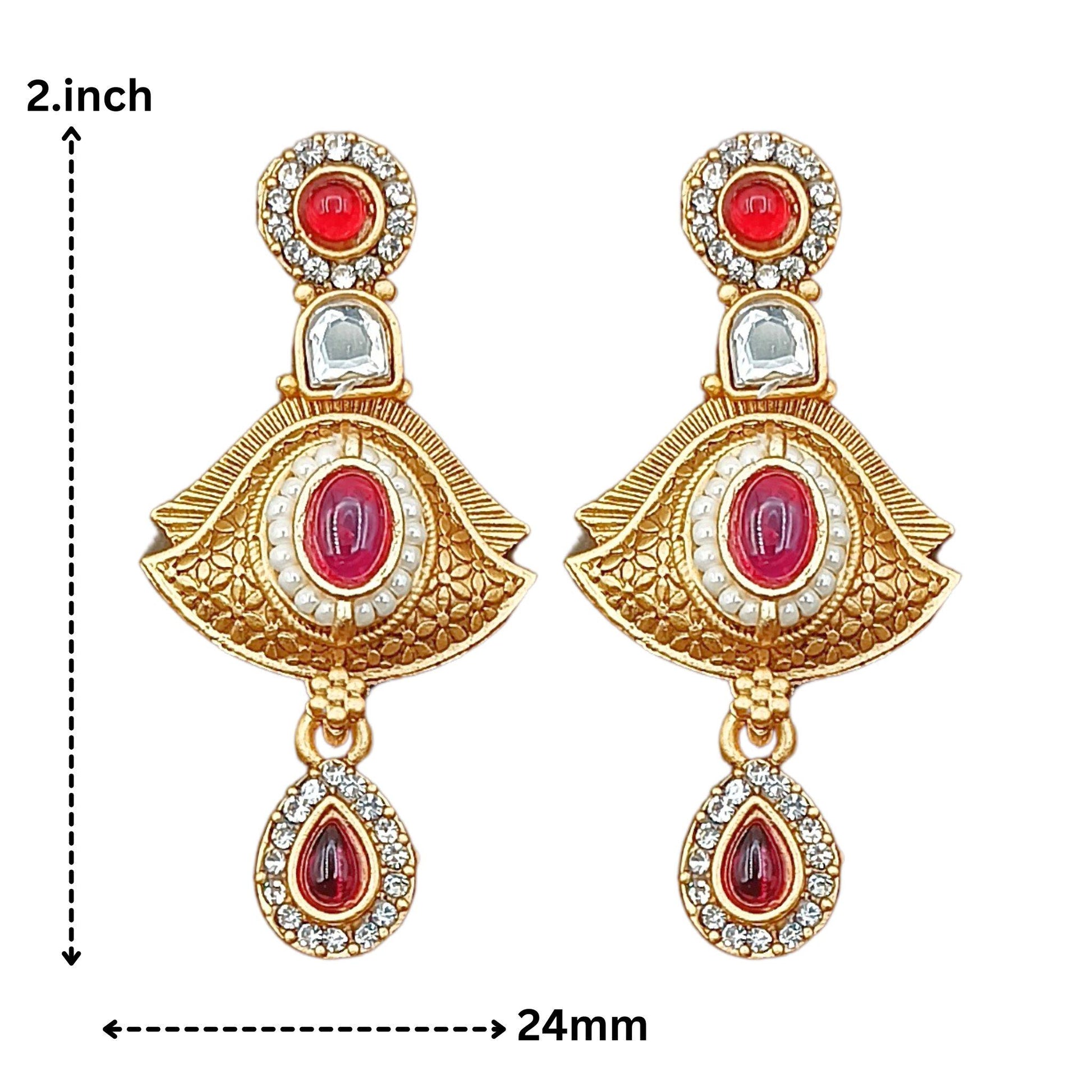 Nawabi Red Meenakari Necklace Set: Rajputi Enamel Choker Earrings