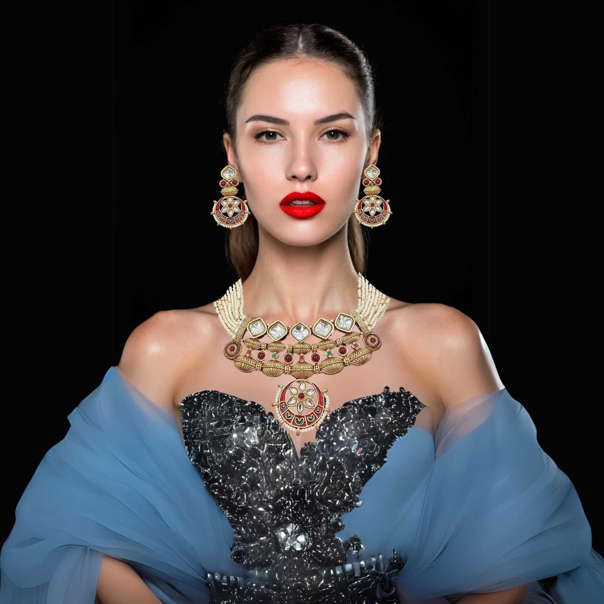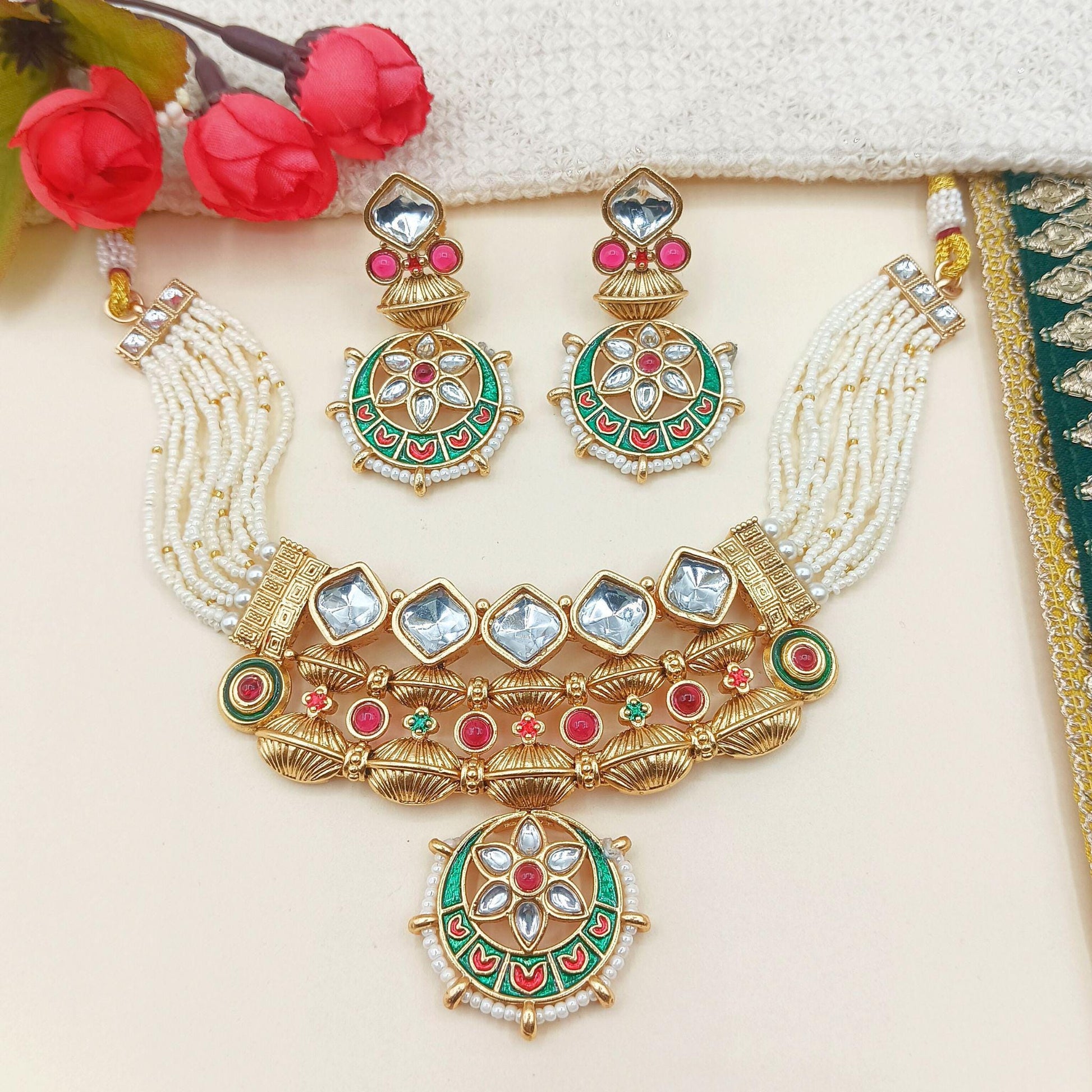 Rajputi Meena Jewelry Set: Traditional Indian Necklace & Earrings